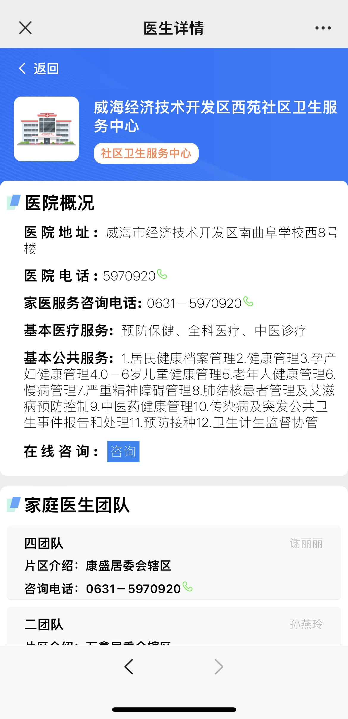 西苑社区卫生服务中心在线咨询服务